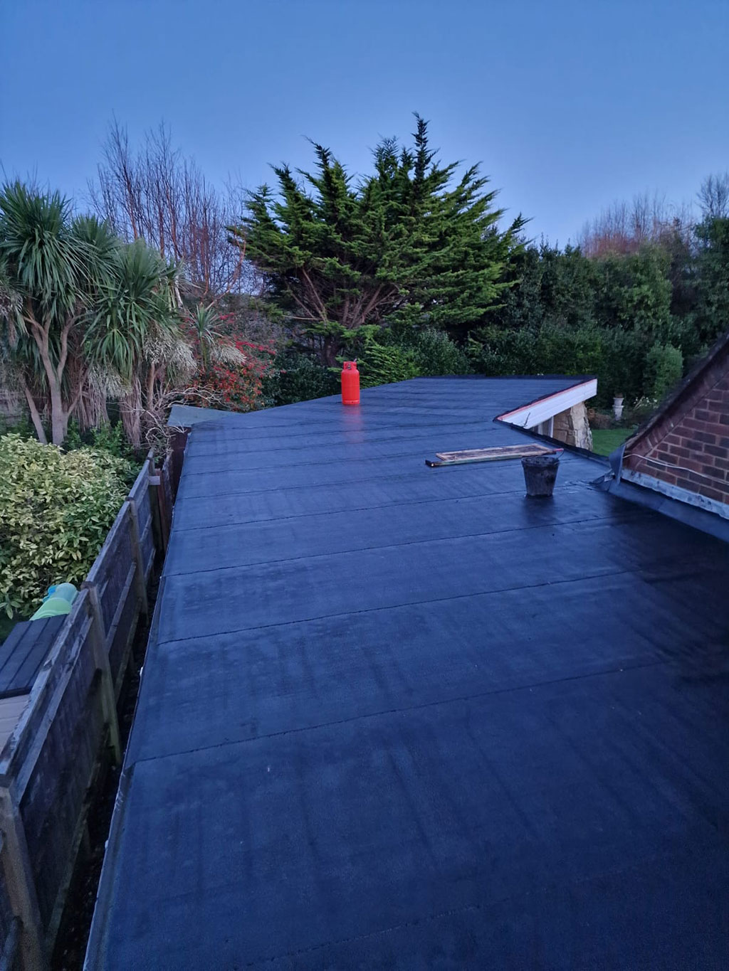 Felt roofing offers a more cost-effective solution for residential and commercial flat roofing projects in East Preston, Goring, Rustington and Worthing. Consisting of layers of bitumen-infused felt, typically reinforced with fiberglass or polyester, felt roofing provides good waterproofing and flexibility, which means our roofers can also employ it for particular forms of pitched roof and low-slope applications.